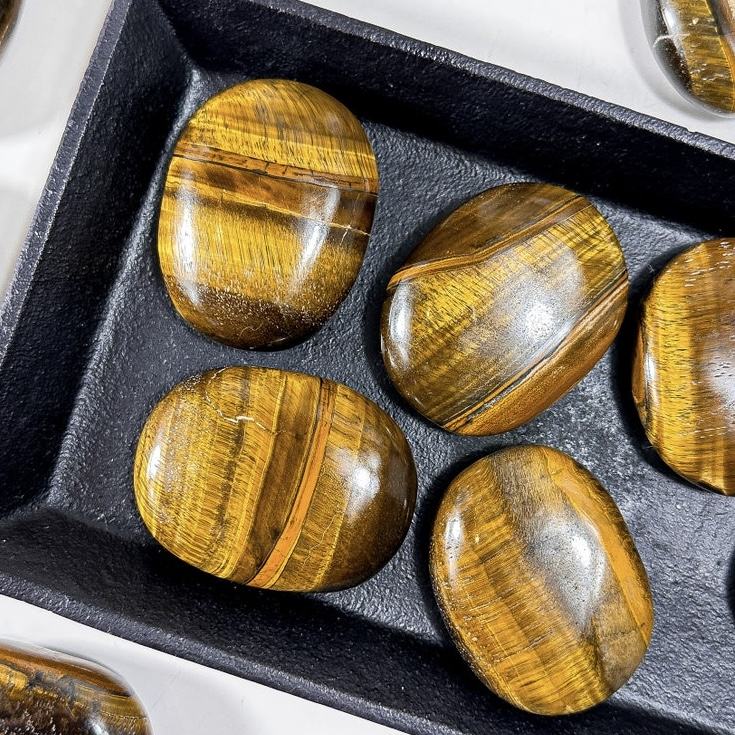 หินพลอยตาเสือธรรมชาติหินคริสตัลขัดเงาสำหรับการทำสมาธิแบบพกพาเพื่อให้พลังงาน