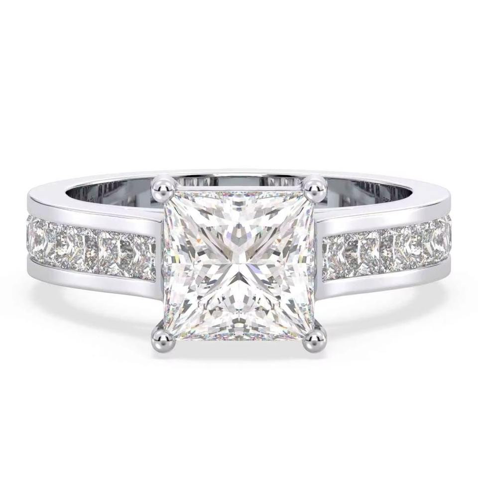 แหวนมอสซาไนต์ทรงปรินเซสคัทคุณภาพพรีเมียม ความใสและความเปล่งประกายอันน่าทึ่ง เหมาะสำหรับการขอแต่งงาน มีจำหน่ายในราคาส่งออก