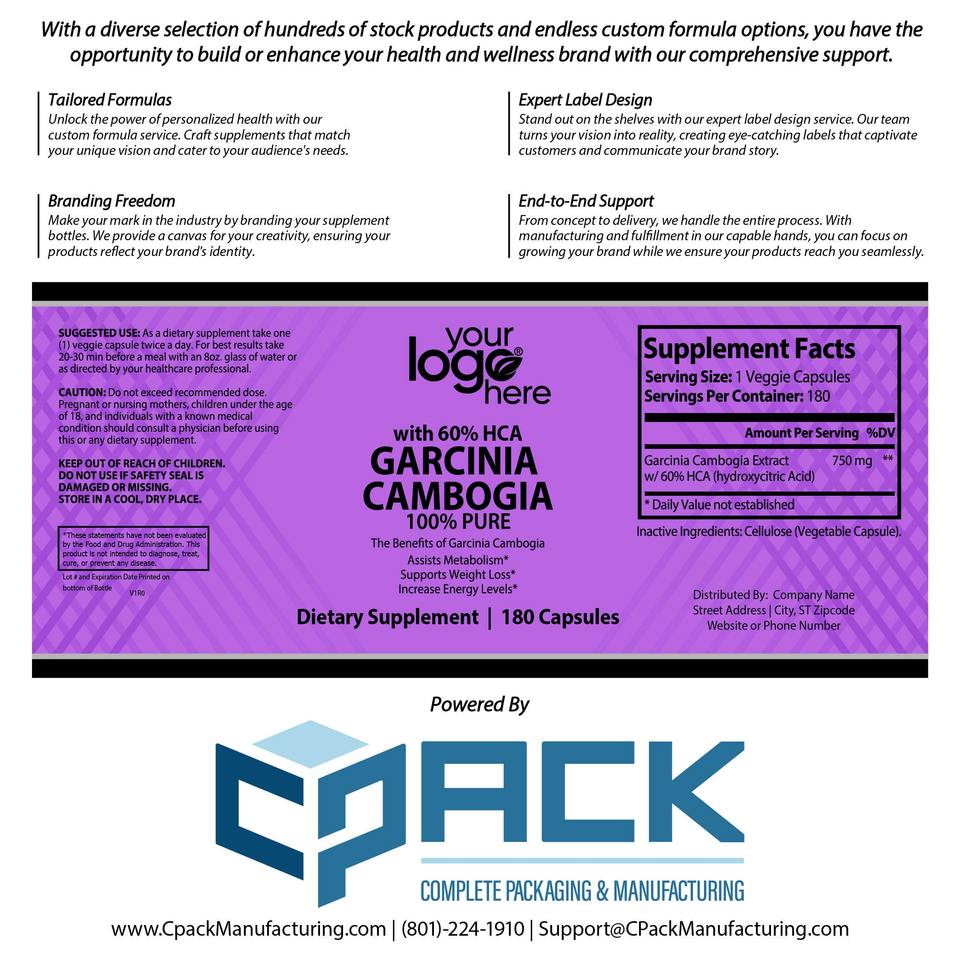 แคปซูลอาหารเสริมวิตามินสำหรับผู้ใหญ่โกิเนียแคมโบเกียทำจาก USA ฉลากส่วนตัว
