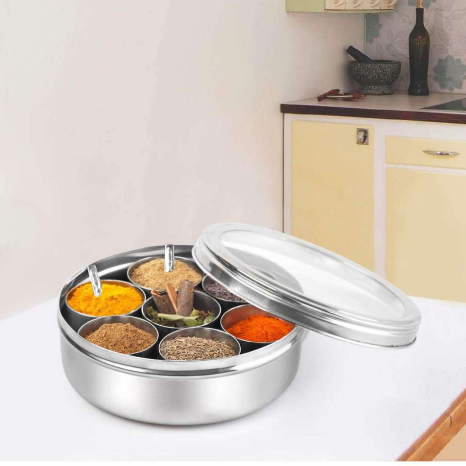 Dani Dabba กล่องใส่เครื่องเทศพร้อมฝาแก้วทำจากสเตนเลสสตีลสำหรับใช้ในห้องครัว