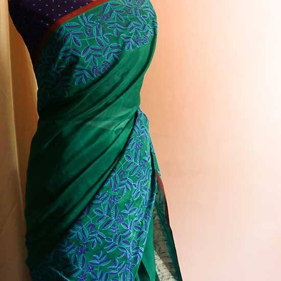 ส่าหรีผ้าฝ้ายผ้าไหมสีเขียวบริสุทธิ์สำหรับงานปาร์ตี้งานแต่งงานสไตล์อินเดียและปากีสถาน