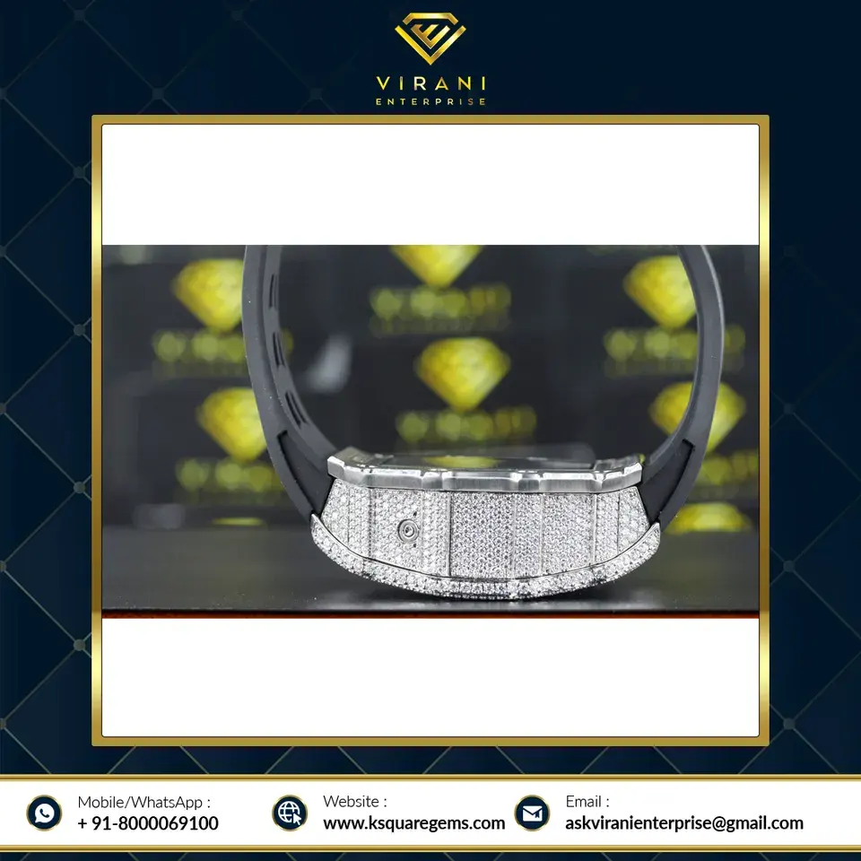 คุณภาพพรีเมี่ยมปุ่มกดซ่อนเข็มกลัดเพชร VVS ชัดเจน Moissanite นาฬิกาของขวัญเสนอจากอินเดีย