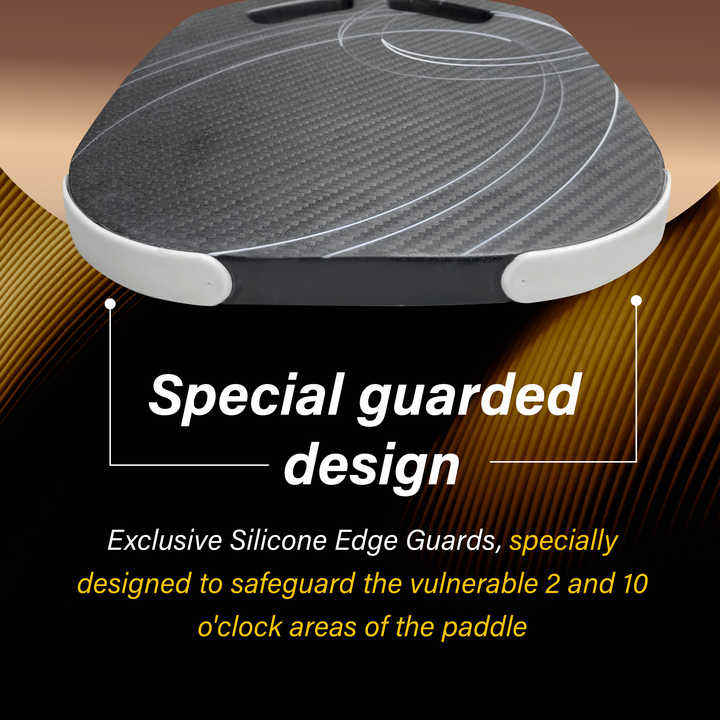 Guarded design protects vulnerable areas at 2 and 10 o'clock on paddle