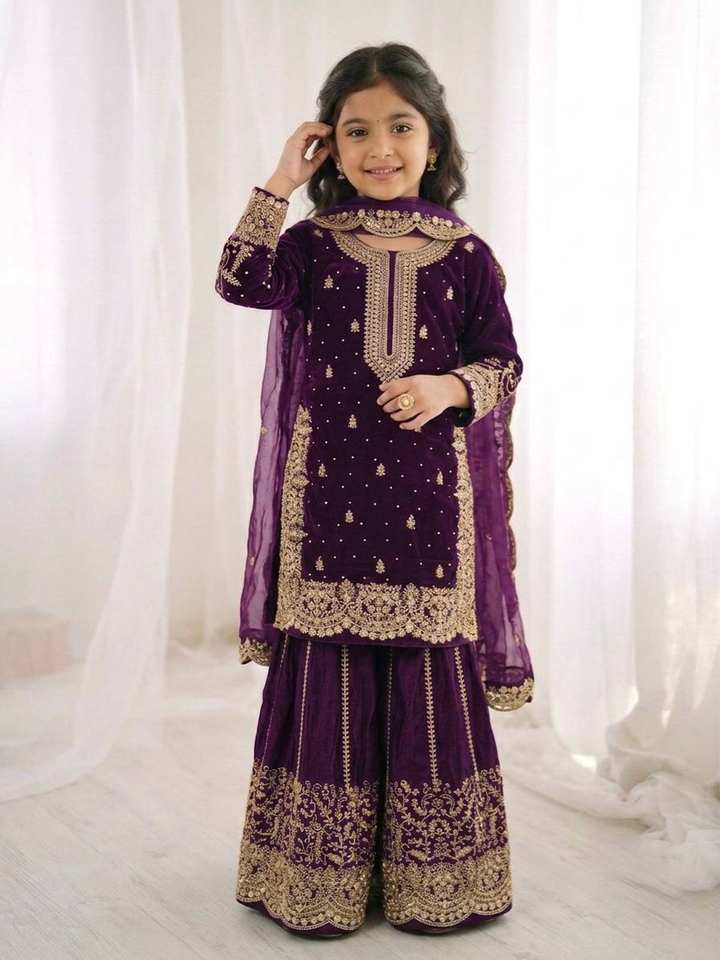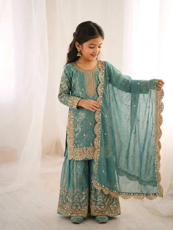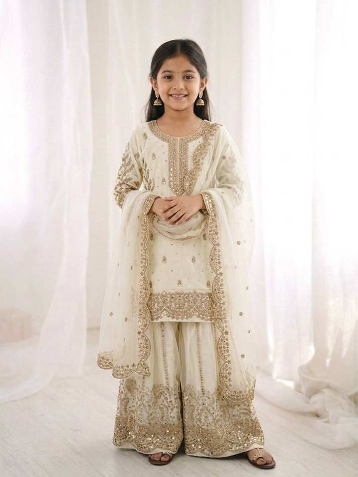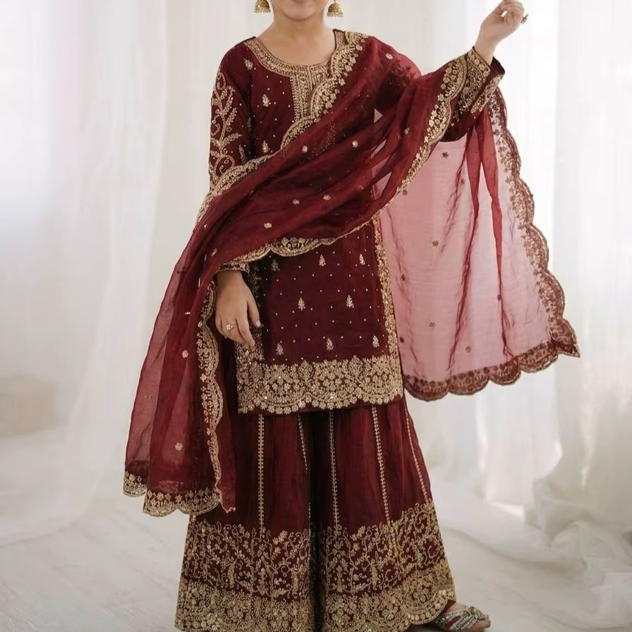 ชุดเสื้อผ้าไหมแท้พรีเมียมสำเร็จรูปสำหรับเด็กผู้หญิง ชุดชาราร่าและผ้าคลุมไหล่