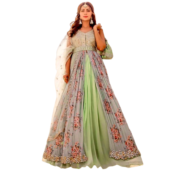 ชุดเดรสผ้าจอร์เจียสำหรับผู้หญิงชุดเดรสพิมพ์ลายดิจิตอลชุดอินเดียชุดเดรสสไตล์โบลีวูด