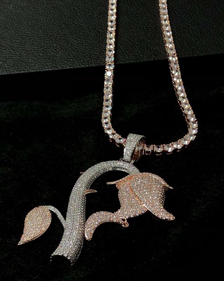 จี้เงินแท้ 925 คุณภาพพรีเมียม รูปดอกไม้ประดับเพชรทรงดอกกุหลาบ สไตล์ฮิปฮอป สำหรับเขาและเธอ