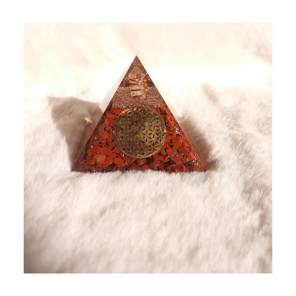ชิปอัญมณีแกะสลักทรงปิรามิดสีแดงสำหรับการป้องกันและเพิ่มพลังงาน