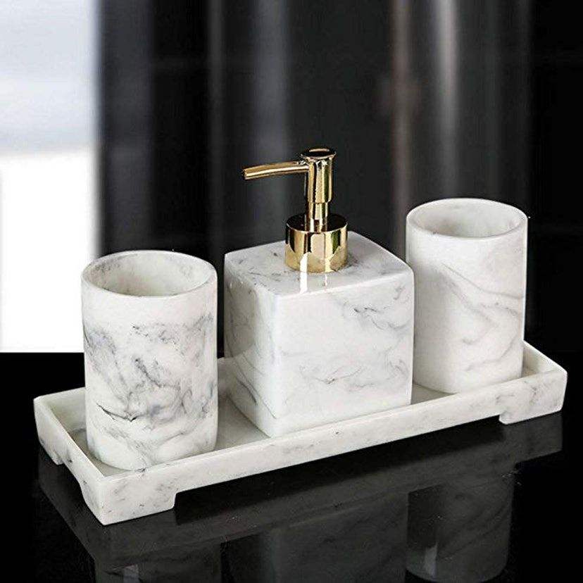ชุดอุปกรณ์ห้องน้ำเรซิ่นคุณภาพพรีเมียม 4 ชิ้น สำหรับใช้ในบ้าน ประกอบด้วย ที่จ่ายสบู่ ที่วางแปรงสีฟัน ถาดวางของในห้องน้ำ ในราคาที่คุ้มค่าที่สุด
