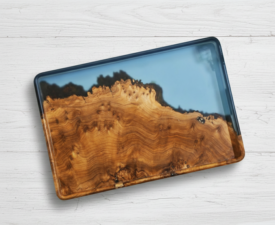 ถาดเสิร์ฟทรงสี่เหลี่ยมผืนผ้า ทำจากไม้ธรรมชาติ เรซิ่นคุณภาพพรีเมียม เป็นมิตรต่อสิ่งแวดล้อม เกรดสำหรับอาหาร ทำด้วยมือ ดีไซน์ทันสมัย ขนาดสั่งทำได้ ตกแต่งบ้าน