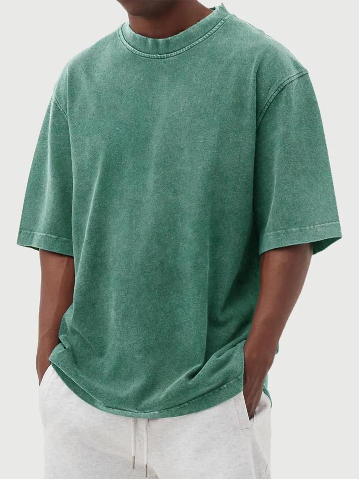 เสื้อยืดทรงหลวมสำหรับผู้ชายสีแอซิดแบบปรับแต่งได้สไตล์ย้อนยุคคุณภาพสูง