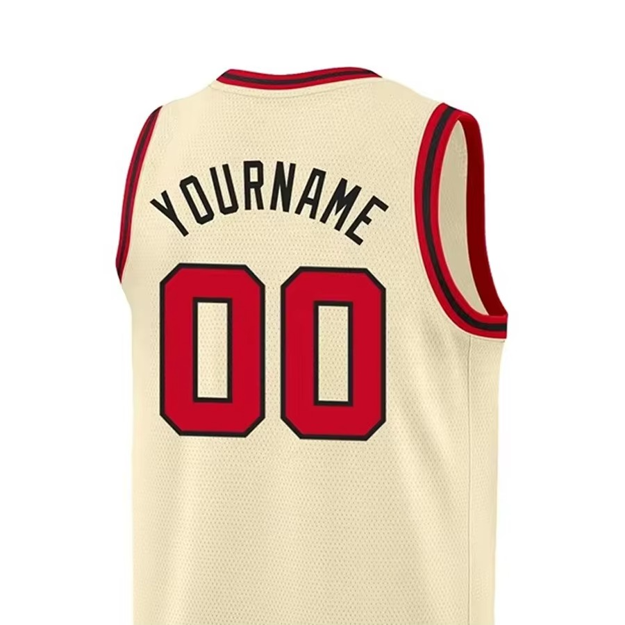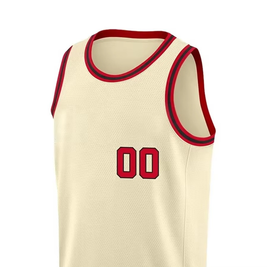 เสื้อบาสเก็ตบอลผู้ชายผ้าตาข่ายระบายอากาศแห้งเร็วแบบกลับด้านได้ คุณภาพพรีเมียม สีครีม รับสกรีนโลโก้ ชื่อ และหมายเลขตามสั่ง