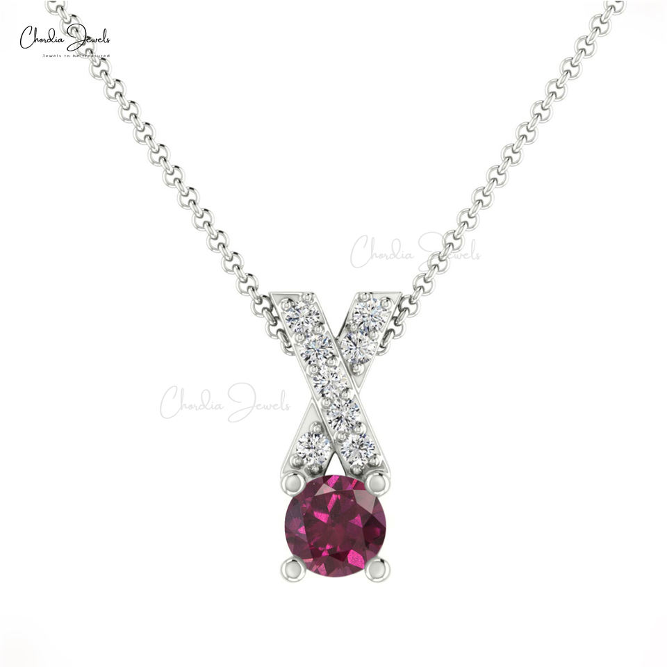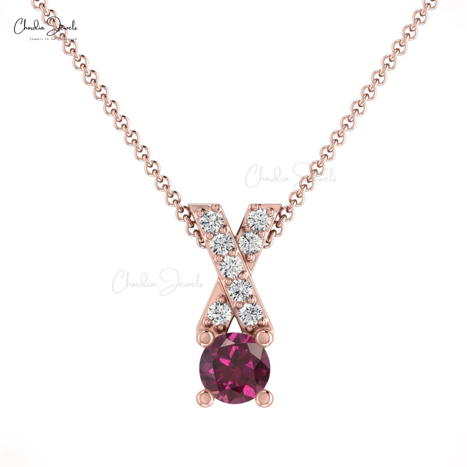 ชุดจี้โกเมนโรโดไลต์ระดับพรีเมี่ยมจี้ทองแท้14K จี้รูป X พร้อมจี้เพชร G-H