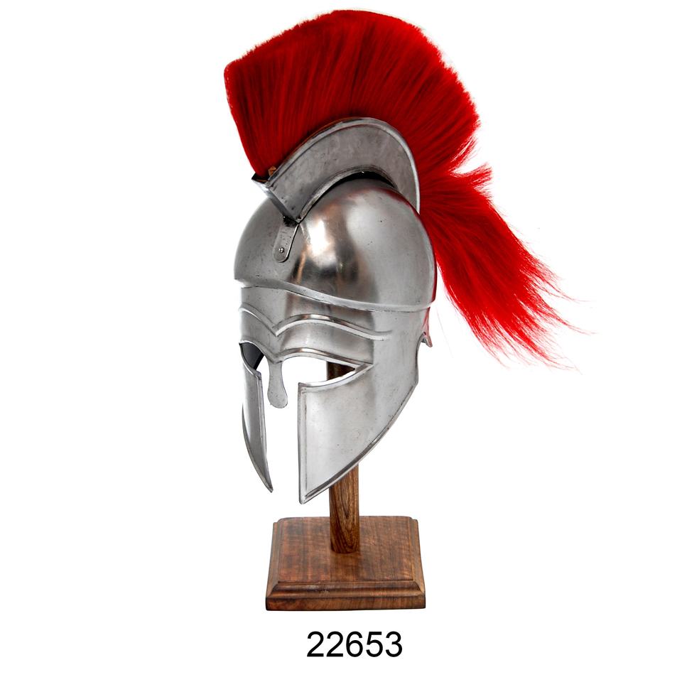 หมวกกันน็อคหุ้มเกราะนายร้อยโรมันคุณภาพพรีเมี่ยมพร้อมหมวกกันน็อคสีแดงสไตล์ยุคกลางสำหรับการตกแต่งในสมัยโบราณ