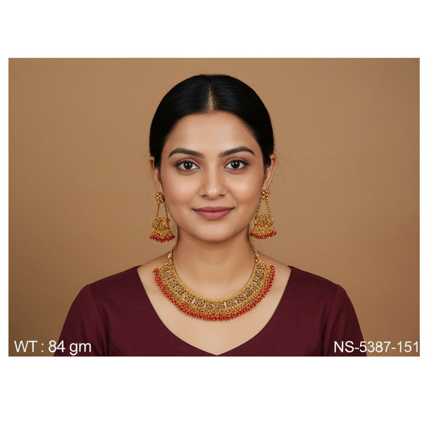 ชุดสร้อยคอแบบจีบสำหรับผู้หญิงดีไซน์แบบดั้งเดิมและชุบทอง