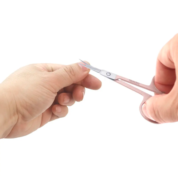 กรรไกรตัดเล็บสแตนเลสสีโรสโกลด์ด้ามจับเซรามิกปลายโค้งอุปกรณ์ความงามใบมีดคม