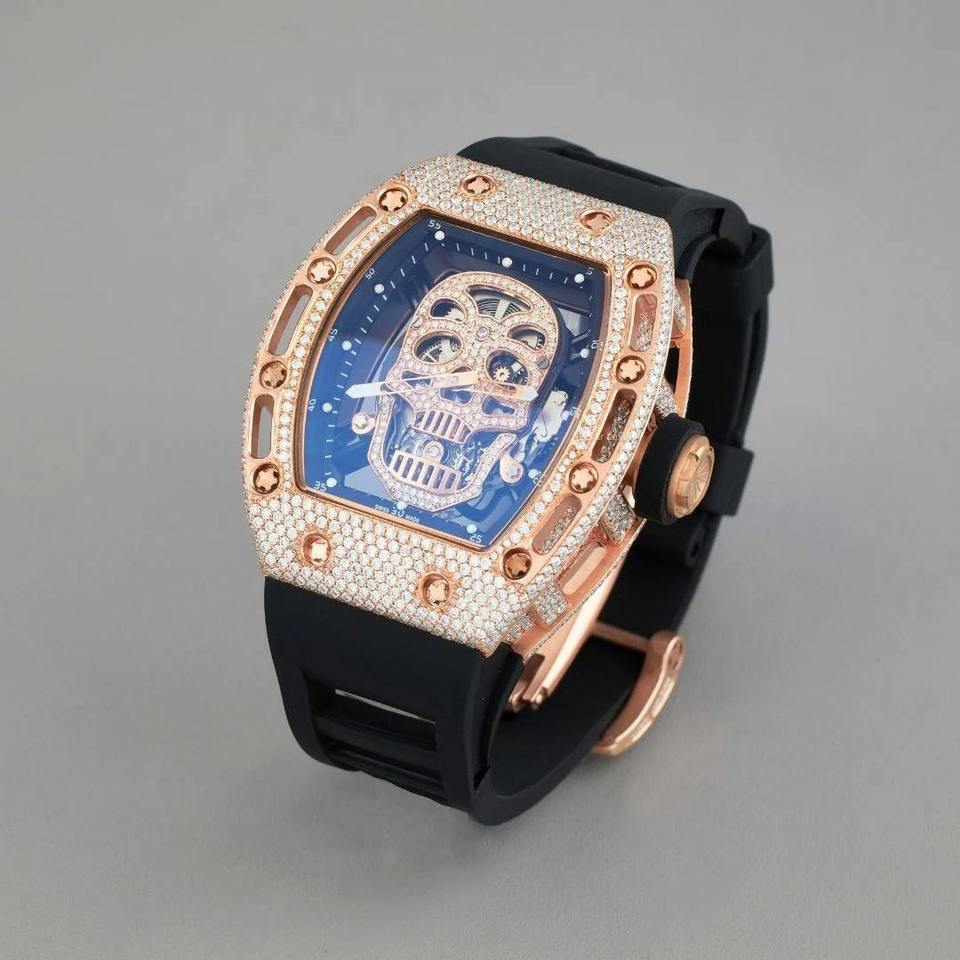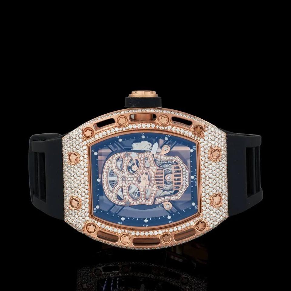 สายยางคุณภาพพรีเมียม นาฬิกาหรูหราสไตล์วินเทจ ประดับเพชรแบบไอซ์เอาท์ ฮิปฮอป ระบบอัตโนมัติ ราคาดีที่สุด ระดับไฮเอนด์