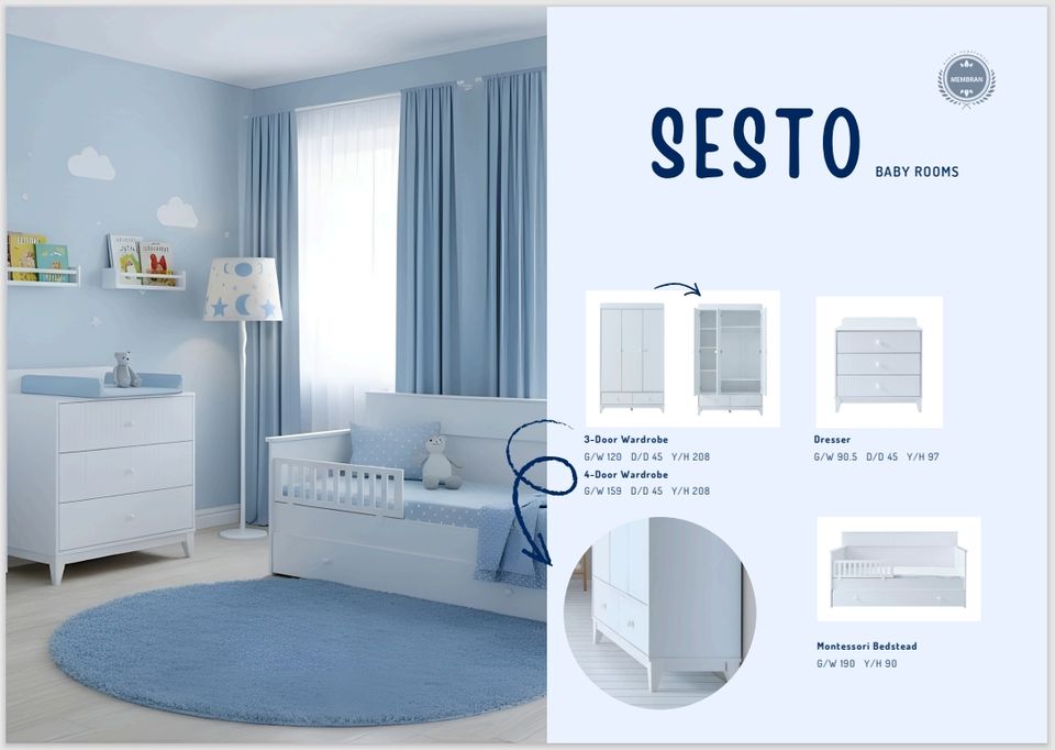 Sesto เปลเด็กสีขาวแบบมีที่กั้นสวยงามเตียงนอนเด็กแบบพรีเมี่ยม
