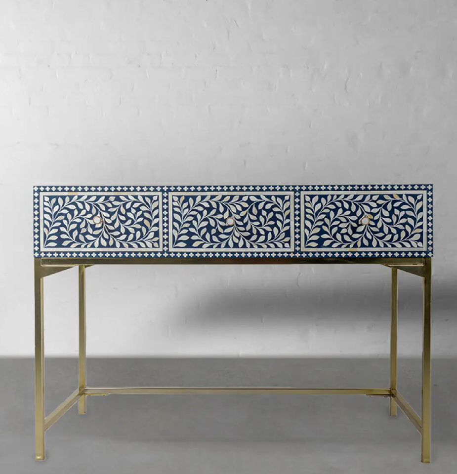 Savi โต๊ะคอนโซลแบบฝังกระดูกสีเทาทำจากไม้ทำจากโรงงาน