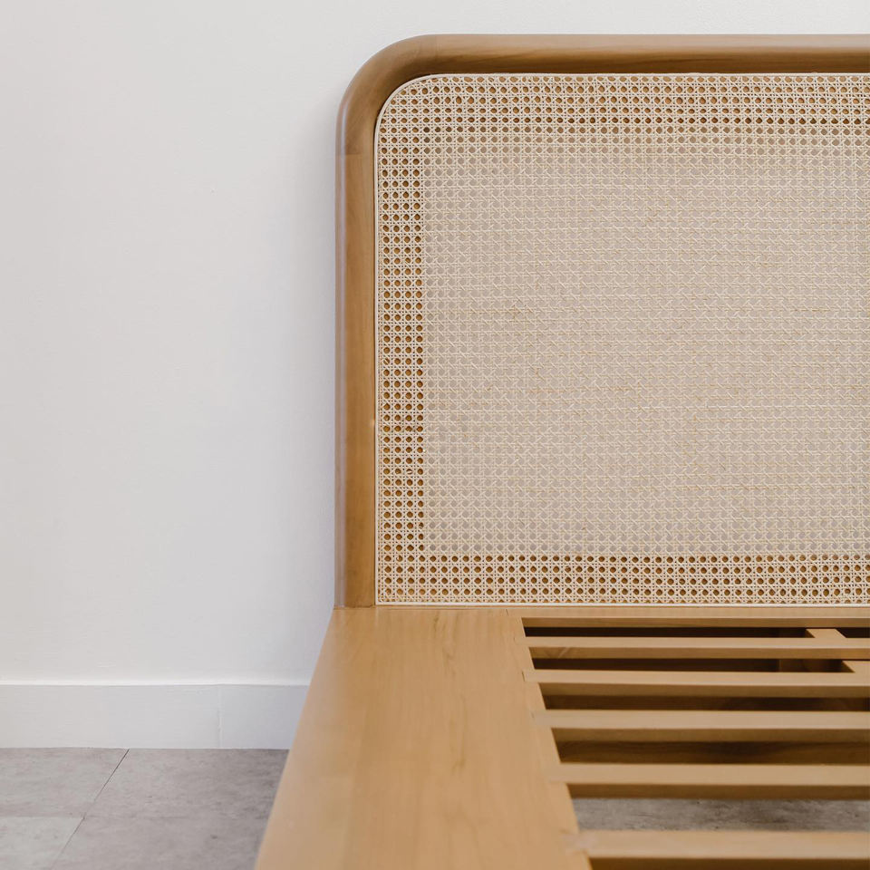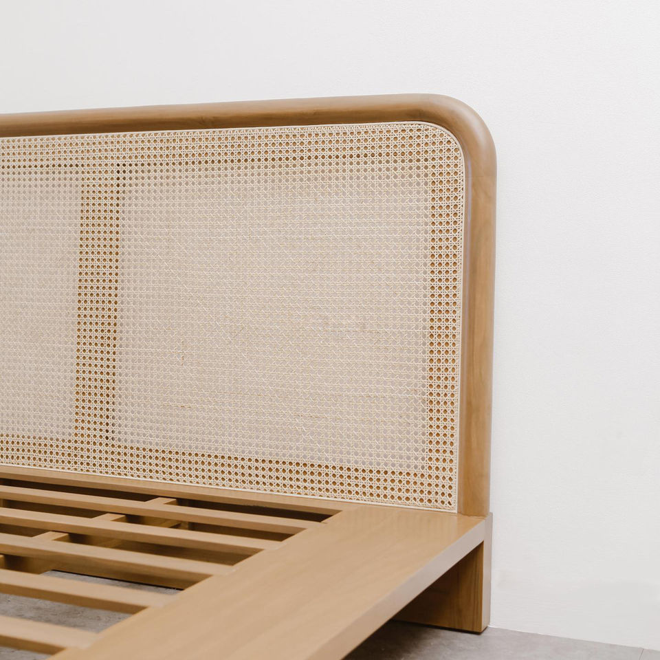 โครงเตียงไม้สักแท้คุณภาพพรีเมียมสไตล์สแกนดิเนเวียน พร้อมหัวเตียงแบบสบาย สำหรับเฟอร์นิเจอร์ห้องนอนใหญ่