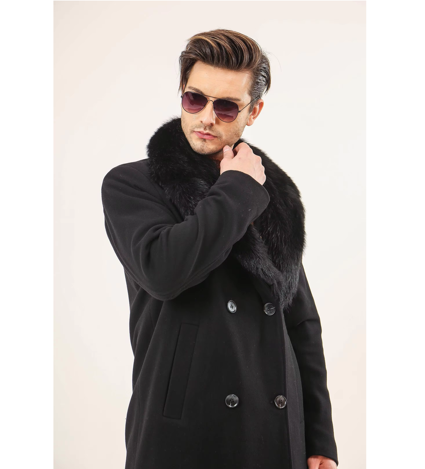 Valeeriano Romano เสื้อโค้ทหนังแกะสีดำสำหรับผู้ชาย, เสื้อโค้ทขนสัตว์ผ้าฝ้ายเติมระบายอากาศดีไซน์หนาสไตล์ตุรกี