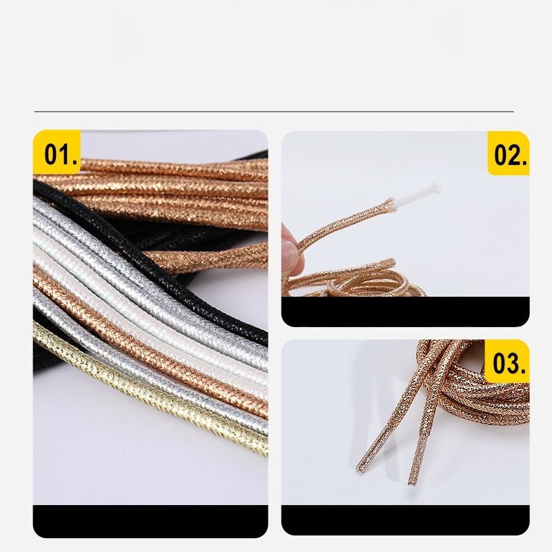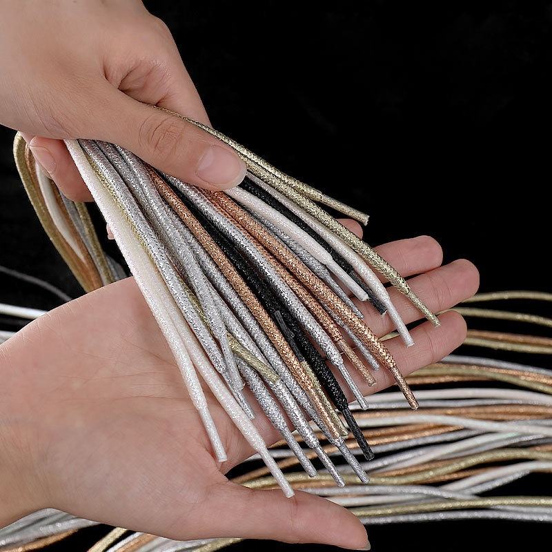 เชือกผูกรองเท้าแบบกลมคุณภาพพรีเมียม สีทองวิบวับ ประดับกลิตเตอร์ สำหรับรองเท้าลำลองและรองเท้ากีฬา