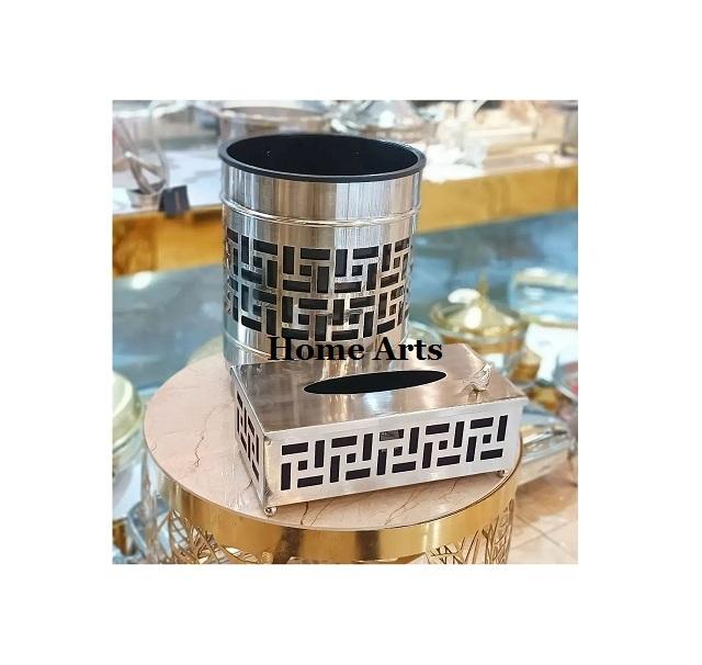 ถังขยะสแตนเลสสีเงินพร้อมกล่องใส่ผ้าเช็ดปากถังเก็บฝุ่นคุณภาพดีที่สุด