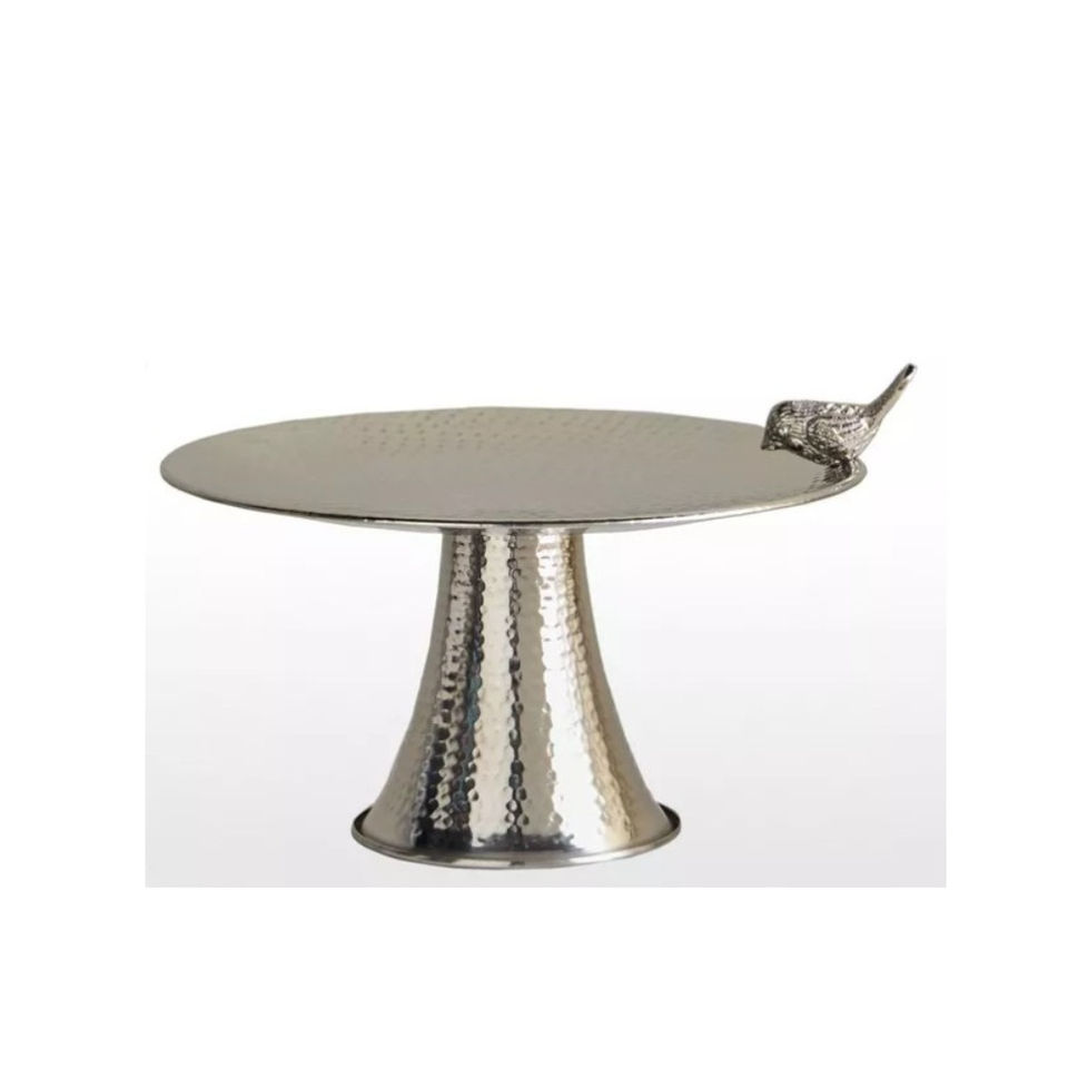 ขาตั้งเค้กโลหะคุณภาพพรีเมียมแบบตอกลายสีเงิน พร้อมรูปปั้นนก ฐานสแตนเลสสำหรับเสิร์ฟขนมหวาน ตกแต่งบ้าน