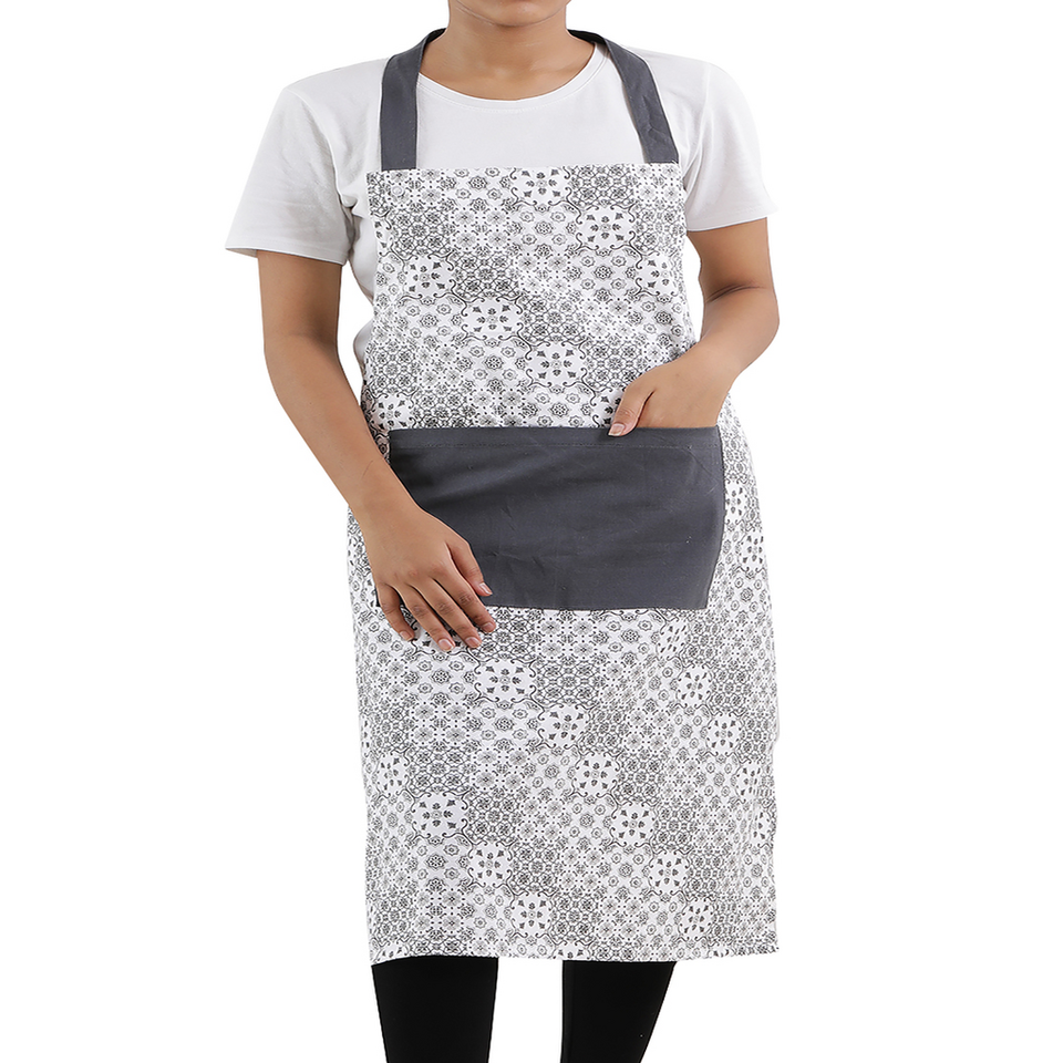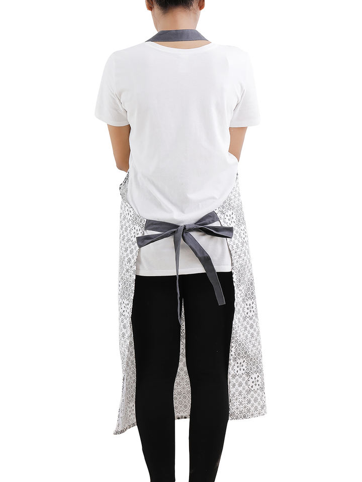 ผ้ากันเปื้อนผ้าฝ้ายแขนกุดสีผสมกับกระเป๋าด้านหน้าสายรัดปรับระดับได้สำหรับบ้านโรงแรมห้องครัวแบบคาดเอว