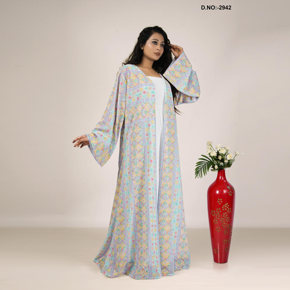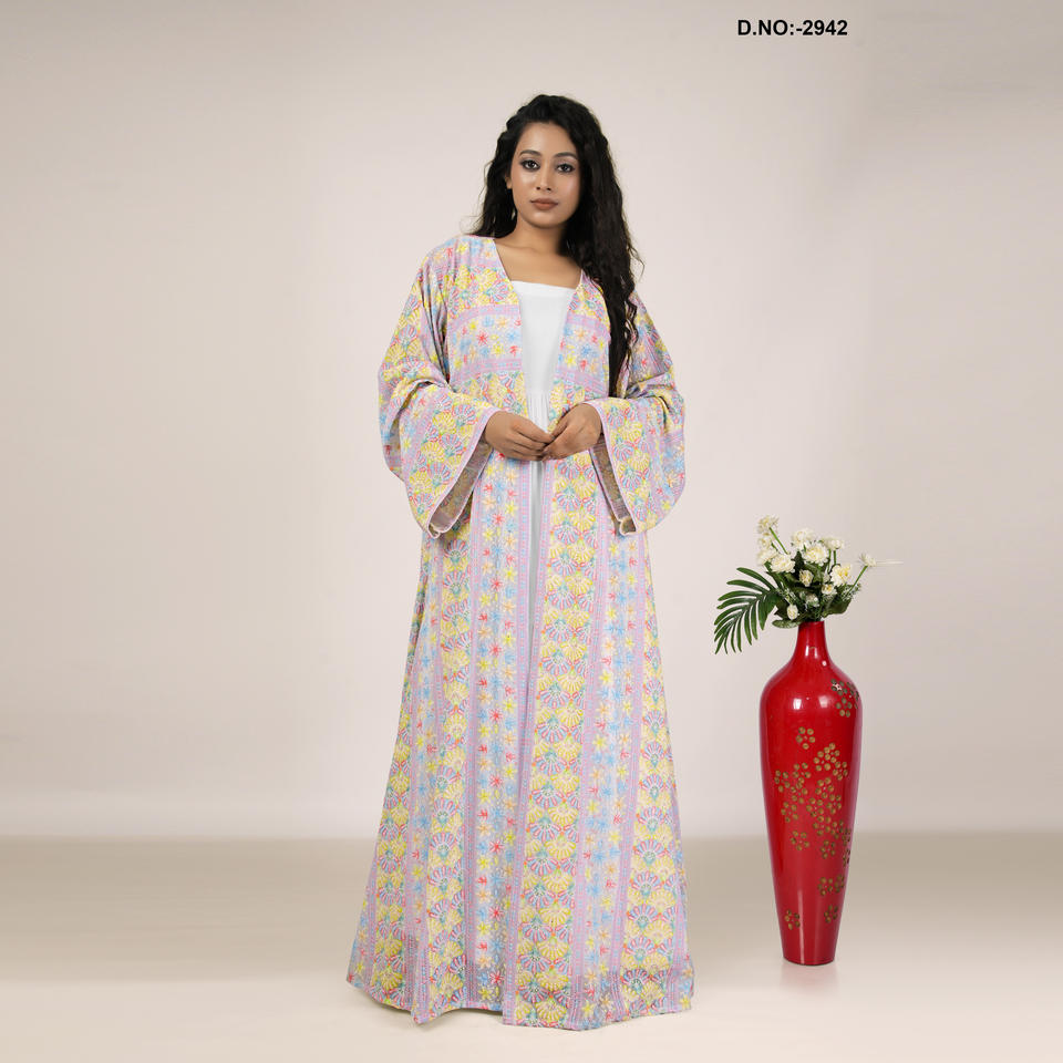 ชุดอาบายะผ้าจอร์เจตต์เนื้อนุ่มคุณภาพพรีเมียม ตกแต่งด้วยงานปักชิกันการีสไตล์แฮนด์เมดอย่างหรูหรา ทรงยาวแบบวินเทจ เหมาะสำหรับงานปาร์ตี้
