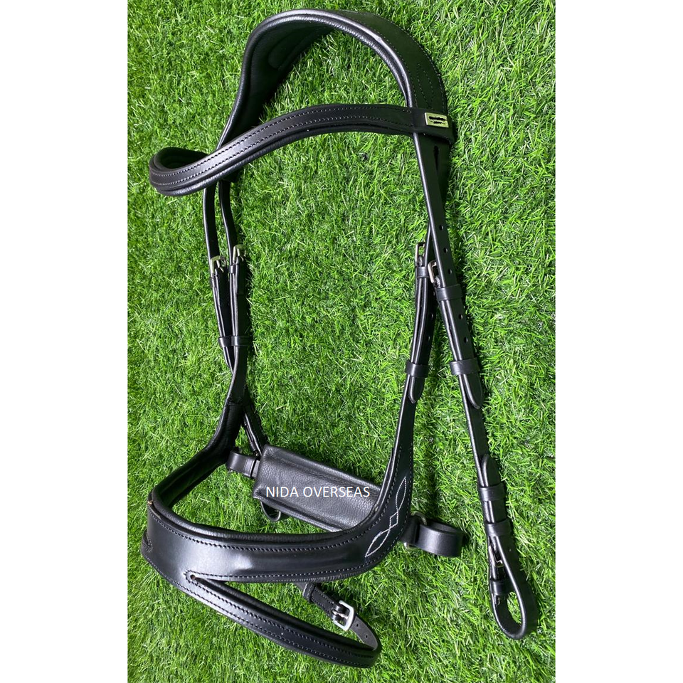 เบาะหนังนิ่มคุณภาพพรีเมี่ยมอุปกรณ์การกระโดดกายวิภาคบังเหียนม้าพร้อมหัวเข็มขัดแบบแข็งสำหรับการขี่ม้าม้าม้า