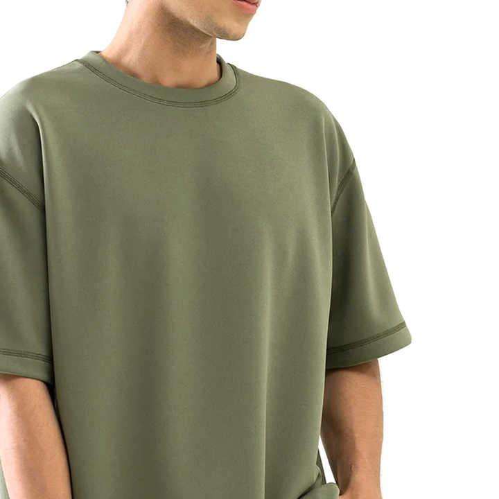 เสื้อยืดโอเวอร์ไซส์ผู้ชายสีพื้นคุณภาพพรีเมียม รับสกรีนโลโก้ตามสั่ง สินค้าขายดี ทรงไหล่ตก