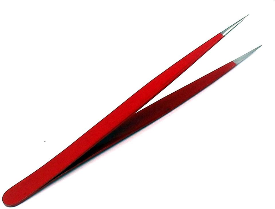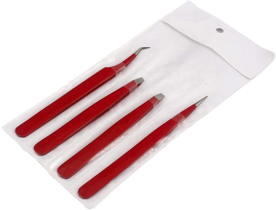 แหนบถอนขนตาสเตนเลสสตีลสีแดงพร้อมปลายแหลมดีไซน์ยั่งยืนและมีกระเป๋าให้ด้วย