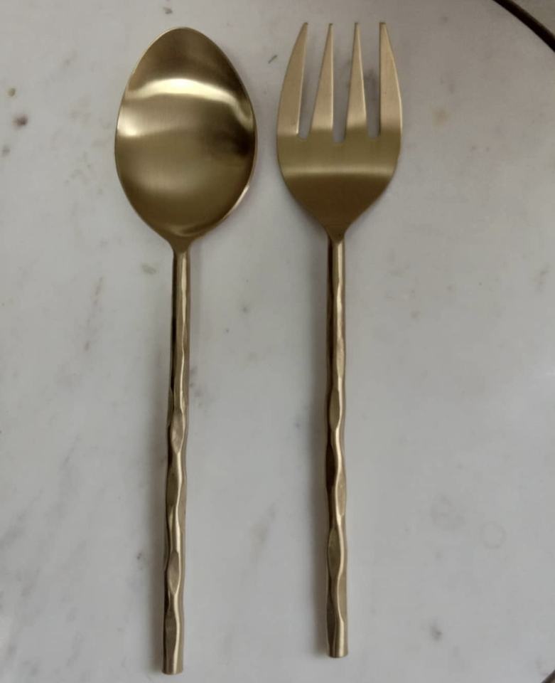 ชุดช้อนส้อมสแตนเลสชุบทองคุณภาพพรีเมียม สำหรับเสิร์ฟสลัด อุปกรณ์ครัว ช้อนส้อมสำหรับเสิร์ฟสลัด ชุดช้อนส้อมบนโต๊ะอาหาร