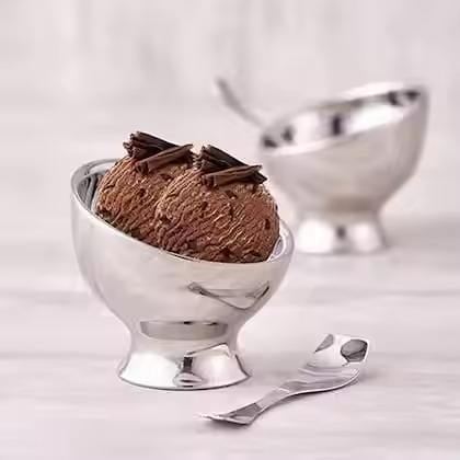 ชามไอศกรีมสแตนเลสคุณภาพพรีเมียมพร้อมช้อน ถ้วยเสิร์ฟขนมหวานโลหะ