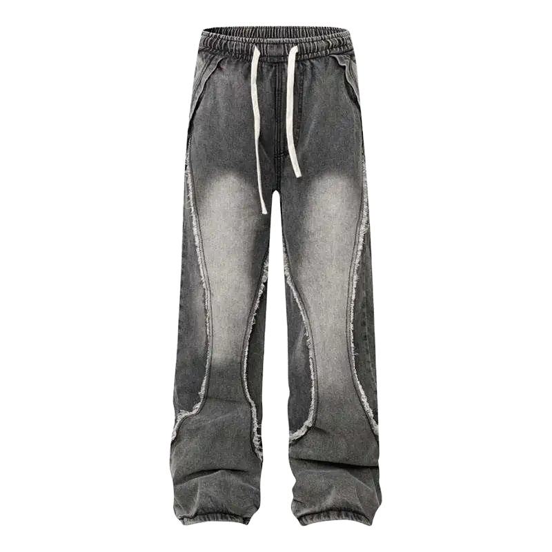 กางเกงยีนส์ทรงแบ็กกี้แบบฟอกสีพรีเมียมคุณภาพสูงสำหรับผู้ชาย พร้อมโลโก้สั่งทำพิเศษ ทรงโอเวอร์ไซส์แบบเรียบง่าย แต่งดีเทลขาดๆ