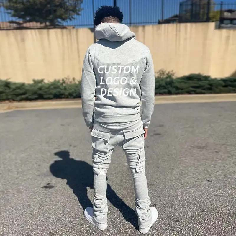 ชุดวอร์มผ้าฝ้าย 100% คุณภาพพรีเมียม สำหรับฤดูหนาว มีฮู้ด สไตล์สตรีทแวร์ ระบายอากาศได้ดี ปักลายตามสั่ง ชุดสองชิ้นสำหรับผู้ชาย แบบซ้อนชั้น