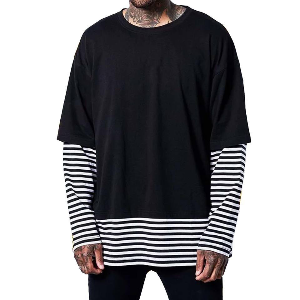 เสื้อยืดคุณภาพพรีเมี่ยมสำหรับผู้ชายเสื้อสองชั้นเสื้อลำลองแนวสตรีทเสื้อยืดผ้าฝ้ายขนาดใหญ่2 in 1แขนสองชั้นสำหรับเด็กผู้ชาย