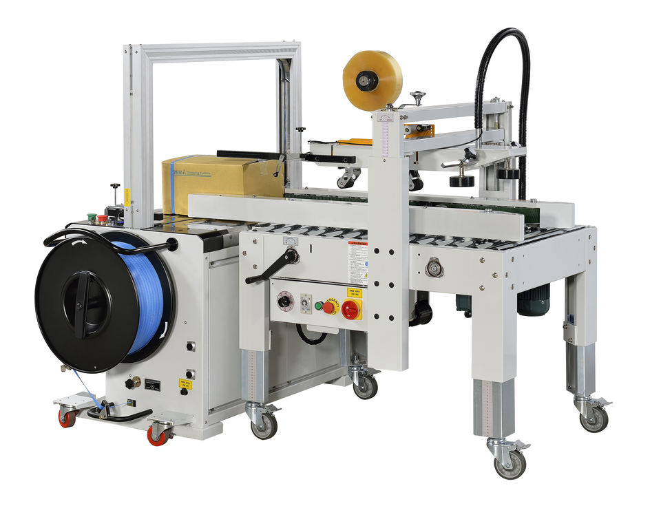เครื่องรัดกล่องอัตโนมัติไฟฟ้าคุณภาพพรีเมียม ผลิตในไต้หวัน รับประกัน 1 ปี แรงดันไฟฟ้า 110/220V ใช้สายรัดพลาสติกและกระดาษ