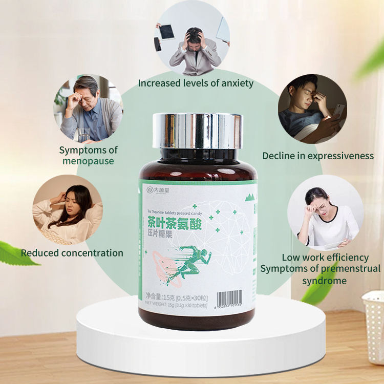 อาหารเสริมลูกอมธีนแบบอัดเม็ดชาคุณภาพสูงเพื่อรองรับการนอนหลับที่ดีต่อสุขภาพและทำให้สมองกระปรี้กระเปร่า