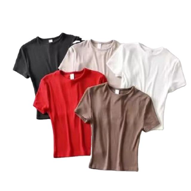 เสื้อยืดผ้าฝ้ายแขนสั้นสำหรับผู้หญิงเสื้อถักแบบลำลองสำหรับฤดูร้อนออกแบบได้ตามต้องการจากผู้ผลิตในอินเดีย