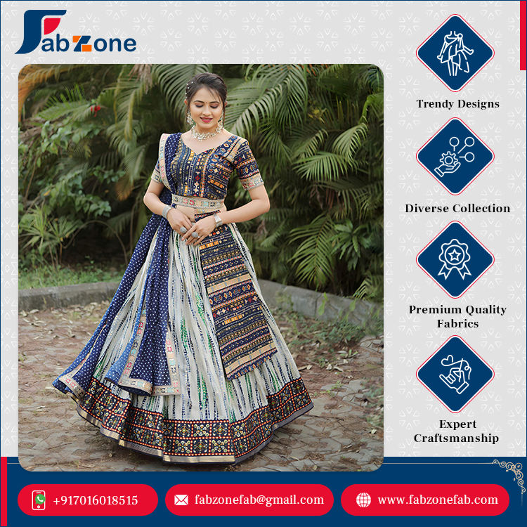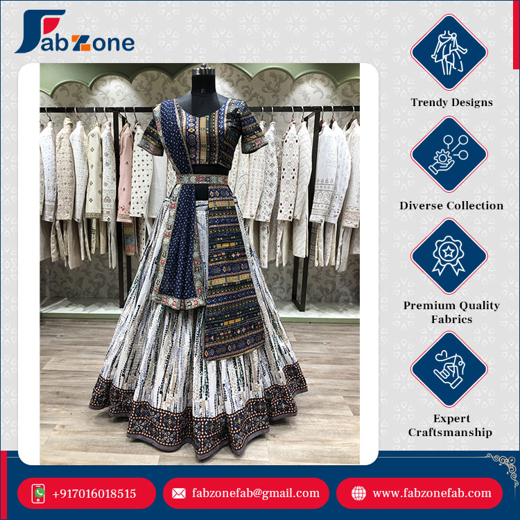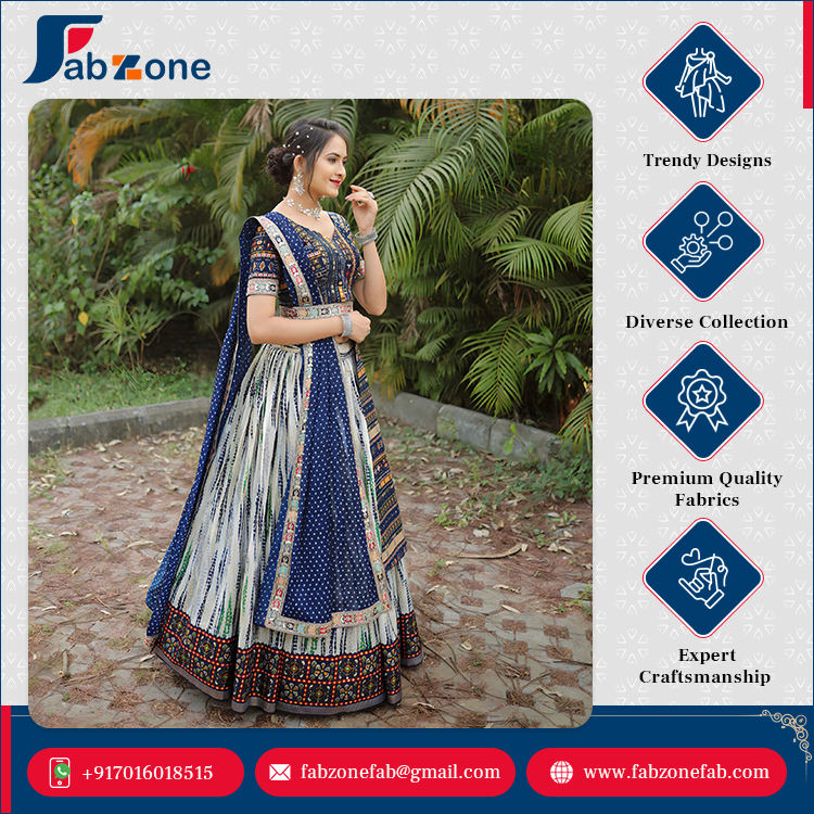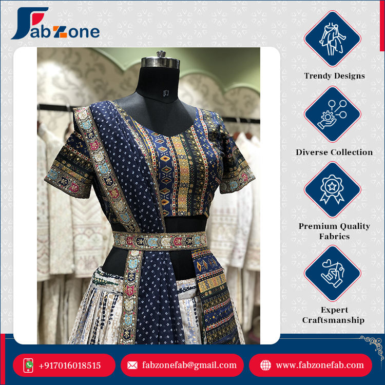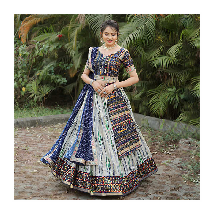 ผ้าฝ้ายเย็บเต็มตัวสีฟ้ารอยัลแบบดั้งเดิมคุณภาพระดับพรีเมี่ยมสามารถแนบ lehenga choli กับ dupatta สำหรับงานแต่งงาน