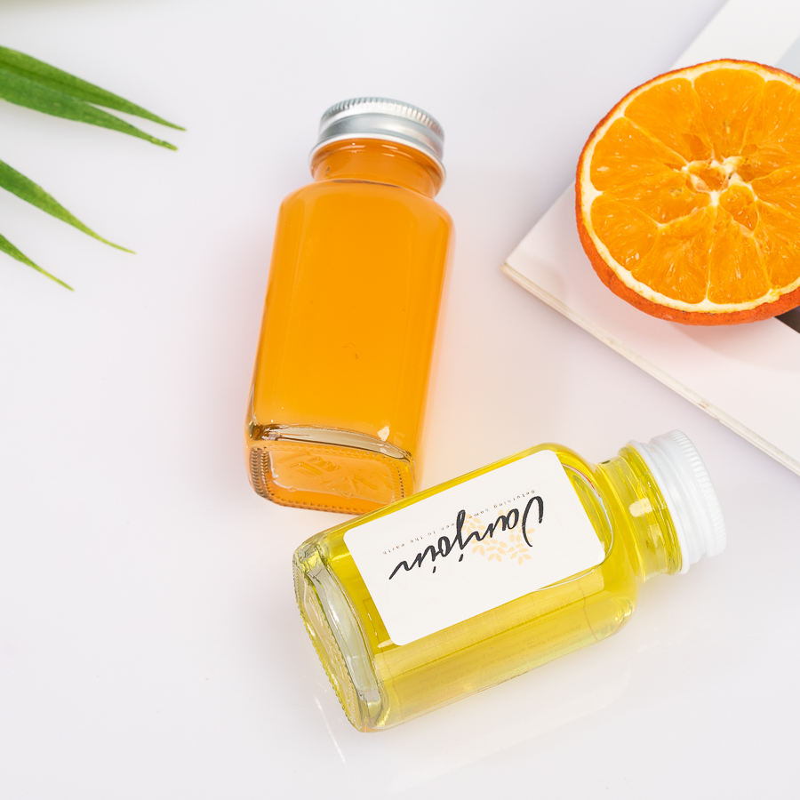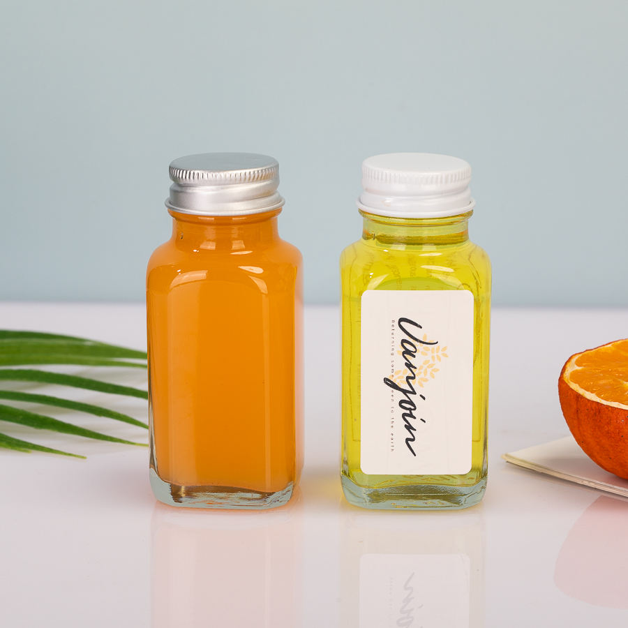 แก้วช็อตทรงเหลี่ยมฝรั่งเศสใสคุณภาพพรีเมียม ขนาด 2 ออนซ์ ขวดน้ำผลไม้แบบกด ขวดขิงพร้อมฝาปิด