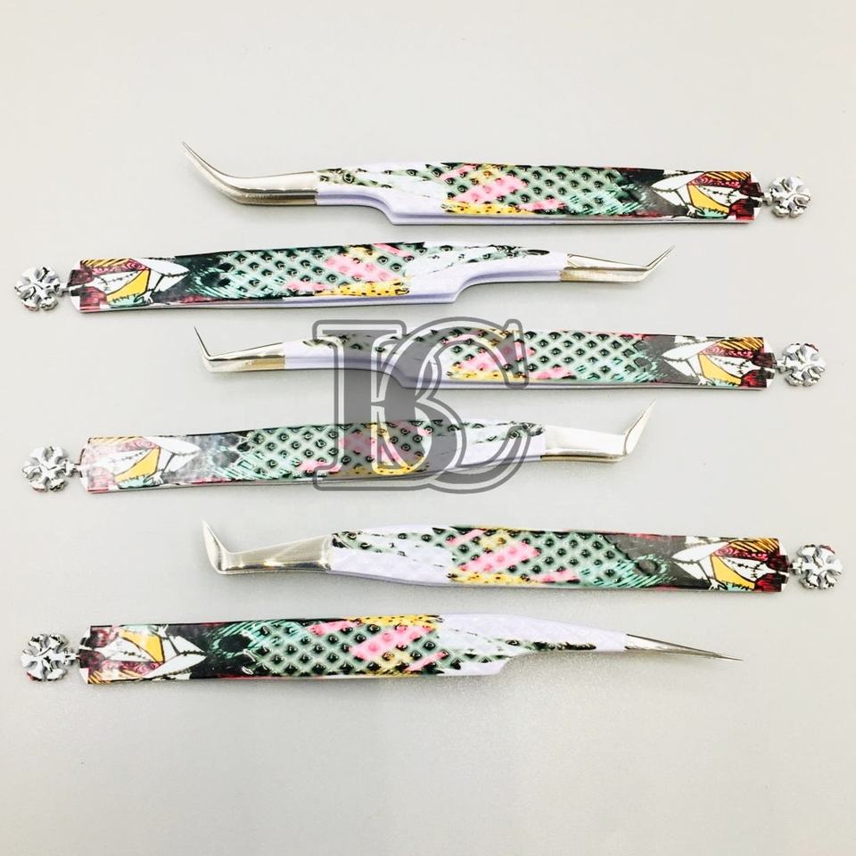 แหนบคีบขนมิงค์แบบคงทนต่อขนตาแหนบเคลือบกระดาษสีเขียว