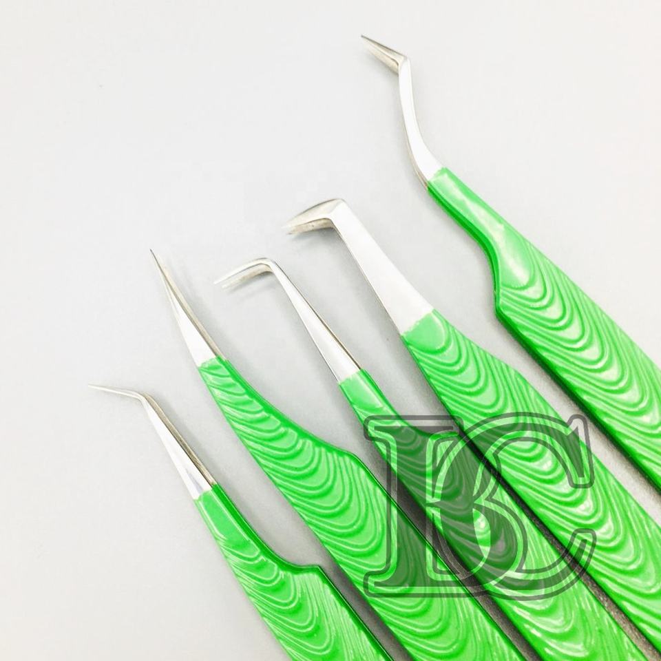 แหนบต่อขนตาสแตนเลสแบบยั่งยืนโลโก้ขนมิงค์สีเขียวรูปเชอร์รี่