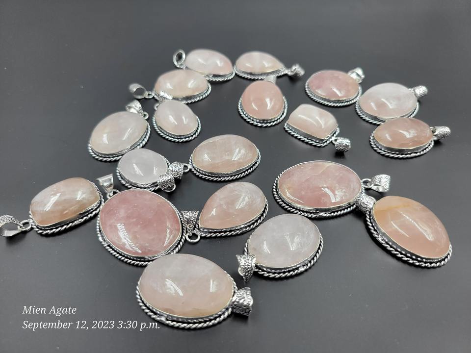 จี้วินเทจคุณภาพพรีเมี่ยมขายส่งจำนวนมากของอัญมณีธรรมชาติโรสควอตซ์เครื่องประดับแฟชั่นสร้อยคอคริสตัลสีชมพูทำด้วยมือ