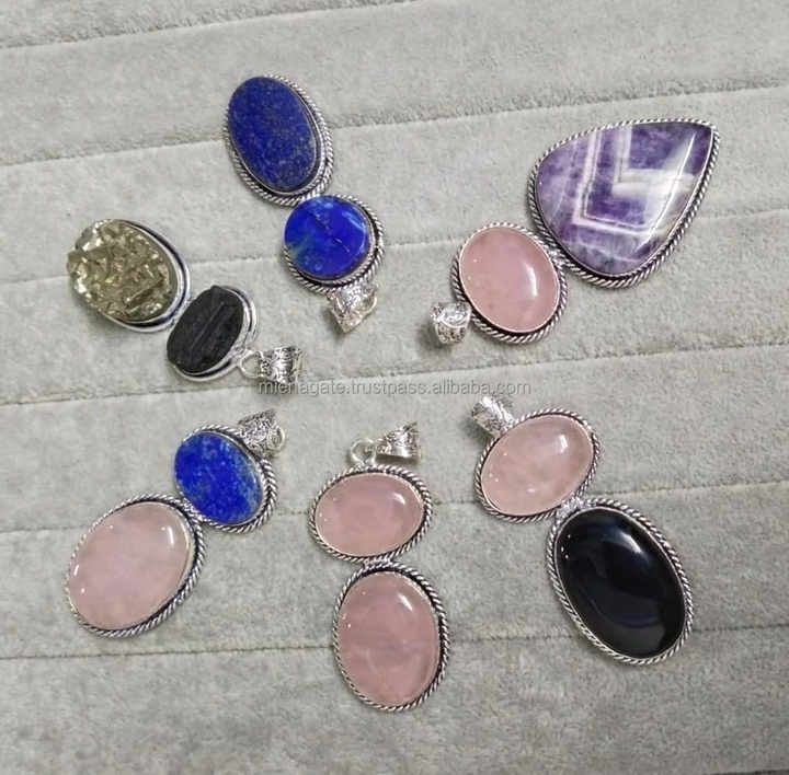 คุณภาพพรีเมี่ยมจี้อัญมณีธรรมชาติจี้คู่เครื่องประดับคริสตัลโรสควอตซ์สีดำนิลมือแกะสลักบอล