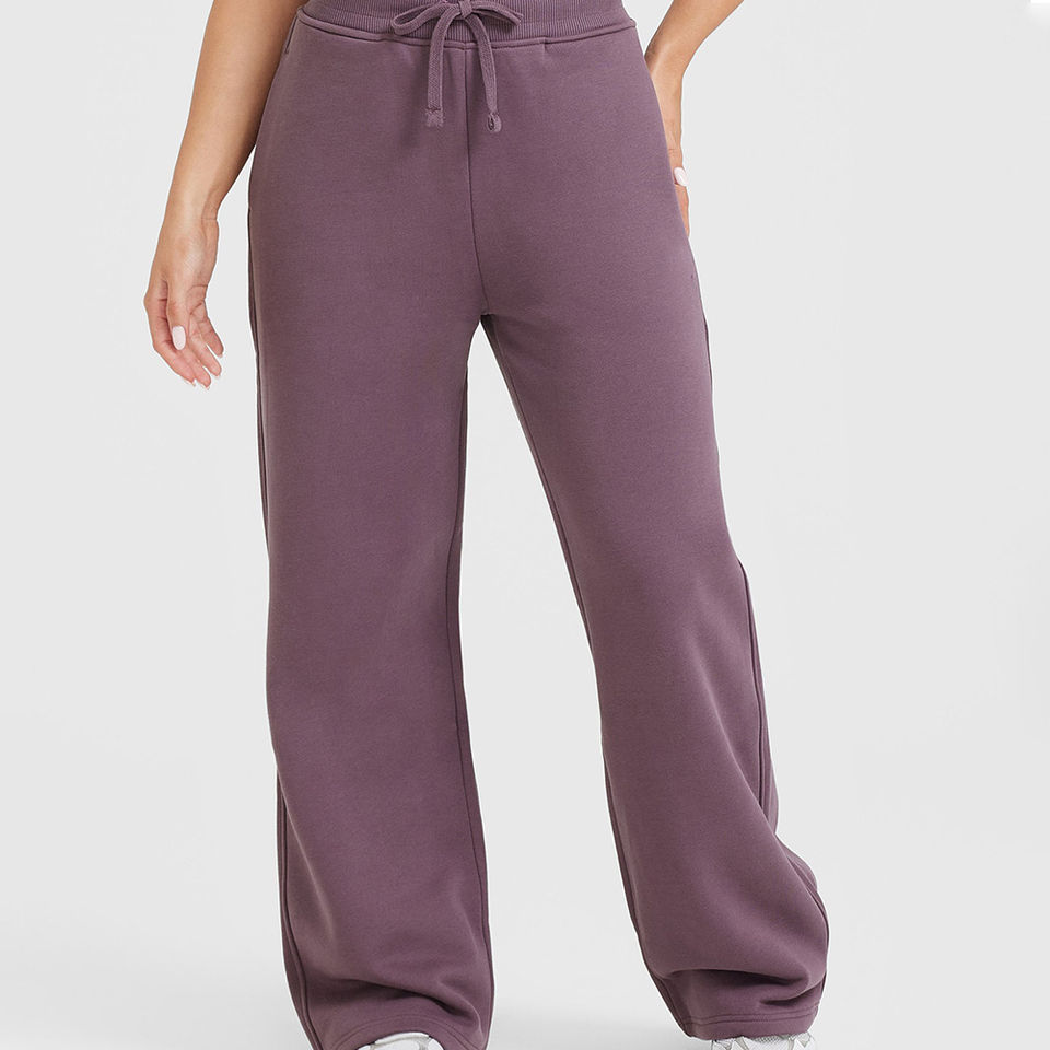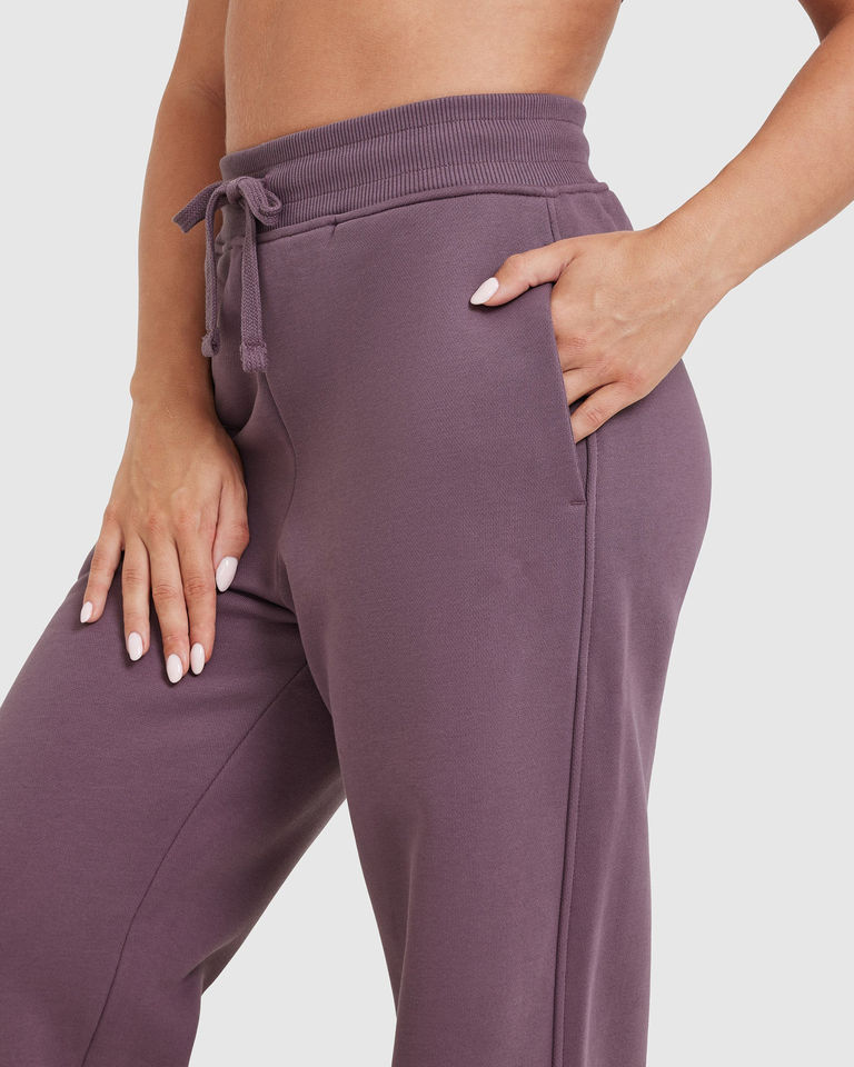 กางเกงวอร์มขาตรงสำหรับผู้หญิงผ้าขนแกะเทอร์รี่ผ้าฟลีซนุ่มสำหรับฤดูหนาวซักได้สีม่วงแนววินเทจ