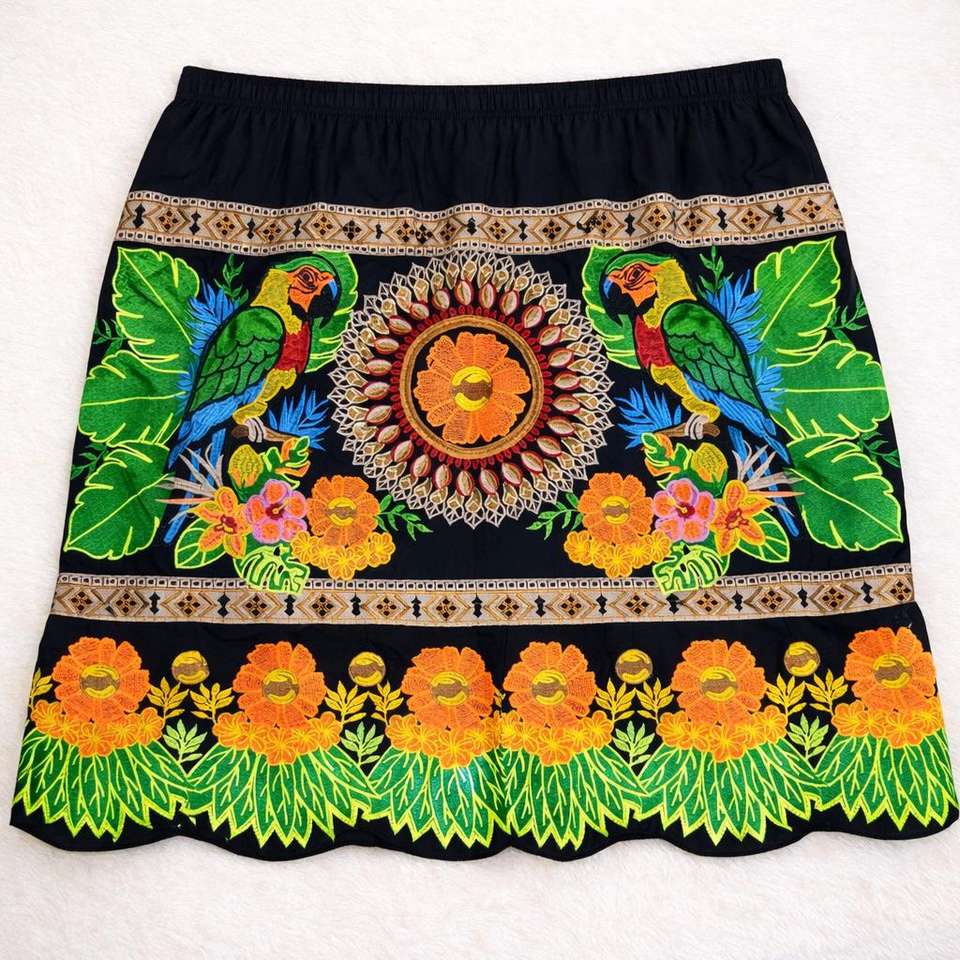 กระโปรงสไตล์วินเทจคุณภาพพรีเมียม ลายปักแบบไมโครนีเซียน ทรงเข้ารูปสำหรับผู้หญิง ดีไซน์โดดเด่น ผลิตจากโพลีเอสเตอร์