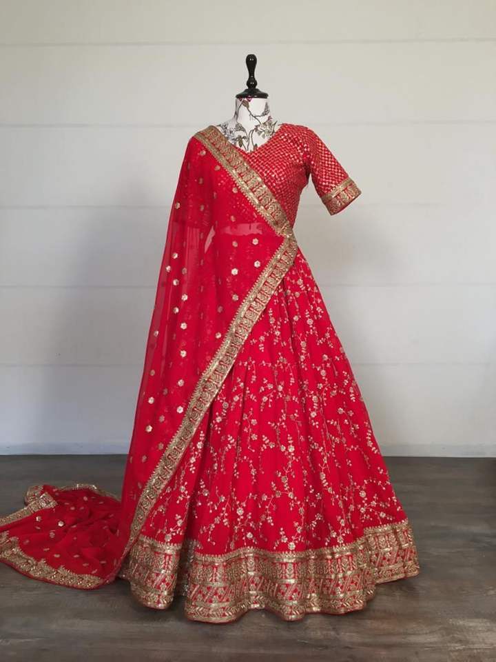 ชุดเจ้าสาวงานแต่งงานคุณภาพพรีเมียม ผ้าจอร์เจตต์ลายบลูมมิ่ง พร้อมงานปักเลื่อม ขายส่งจากเมืองสุรัต ประเทศอินเดีย
