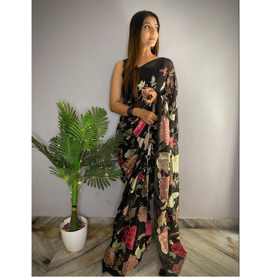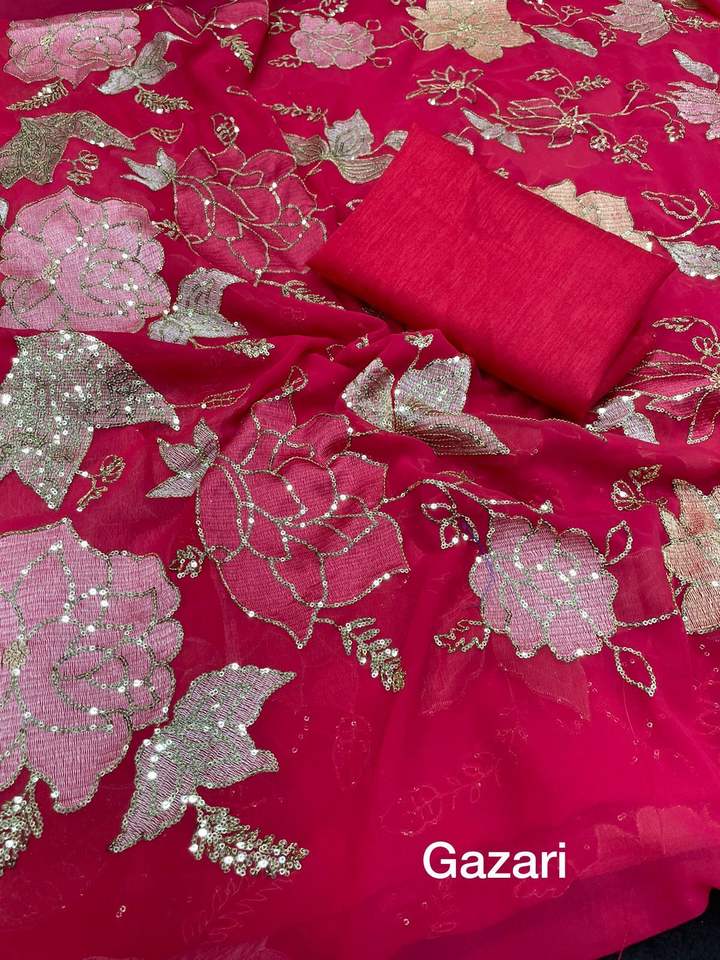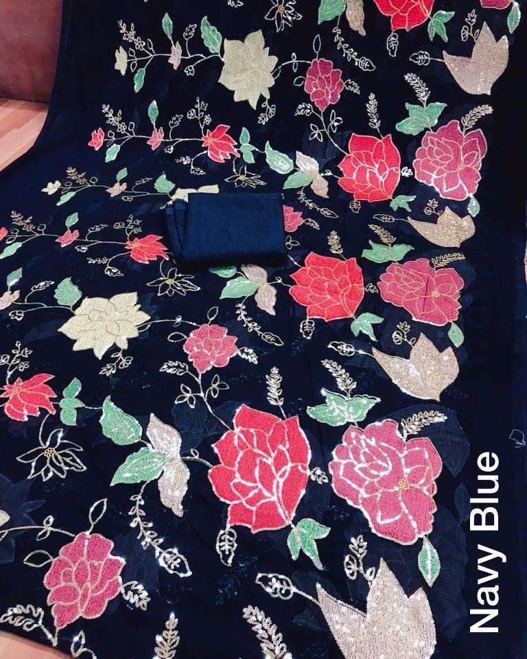 Premium Quality Wedding Party Wear Soft Georgette Embroidery Sequence Work Saree Exclusive Low Rate Online Shopping